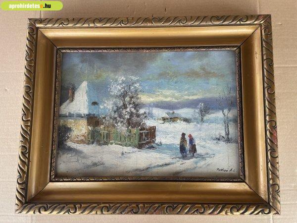 Antik vásár rovaton belül a(z) "PETHEŐ A. LÁSZLÓ:HAVAS TÉLI TÁJ" című hirdetést látja. (fent)