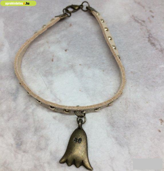 Bizsu ékszerek rovaton belül a(z) "Szegecses, bézs színű bőrkarkötő szellem medállal" című hirdetést látja. (fent)