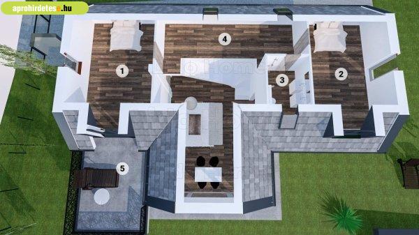 Belül hatalmas konyha-nappali-étkező, 3 szoba, gardrób, galéria, 2 fürdőszoba +