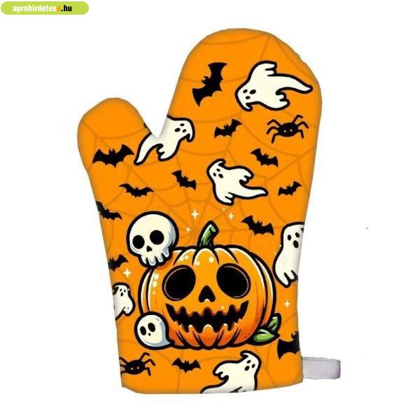 Vicces edényfogó kesztyű, főzőkesztyű, Happy Halloween, tökf