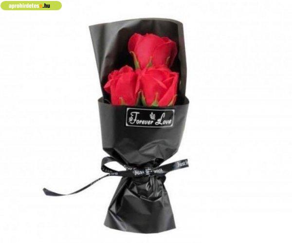 Szappanrózsa csokor - 3 szál piros 24cm