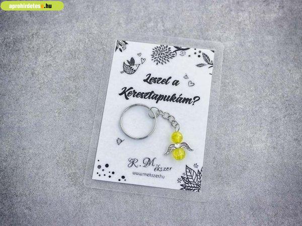 Ajándék ötletek rovaton belül a(z) "Leszel a Keresztapukám sárga angyal medálos kulcstartó" című hirdetést látja. (fent)