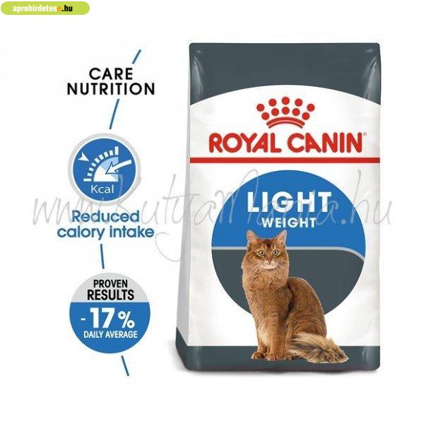 Etetési útmutató: A Royal Canin Light Weight Care teljes értékű macskaeledel.