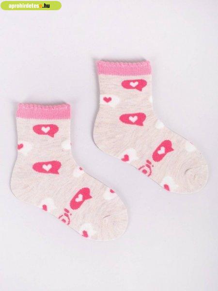 Yo! zokni 23/26 - drapp/rózsaszín szív