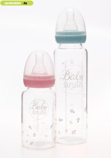 BabyBruin® hőálló üveg cumisüveg 240ml szilikon etetőcumival, cseppmentes