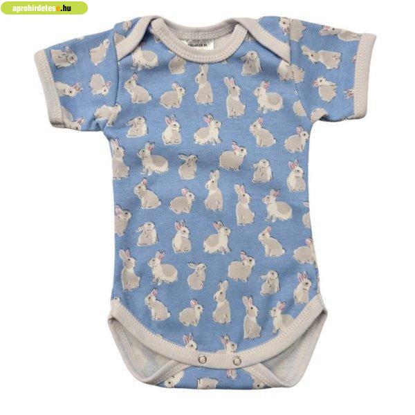 Rövid ujjú, békanyakú body - Kék Nyuszik/62