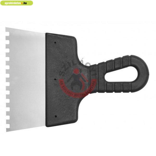 200 mm széles spatula 6 mm-es fogakkal, rozsdamentes acélból. Építési ragasztók,