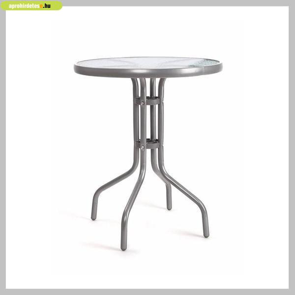 HAPPY GREEN Fém asztal üveglappal, 60 cm, szürke 50XG4027S