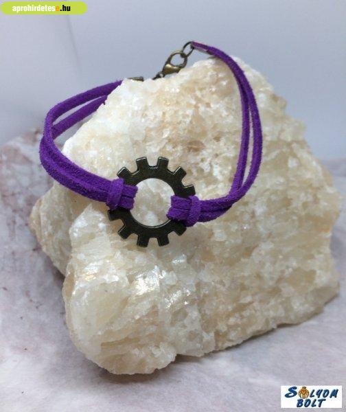 Bizsu ékszerek rovaton belül a(z) "Karkötő lila bőrcsíkkal és fogaskerékkel" című hirdetést látja. (fent)