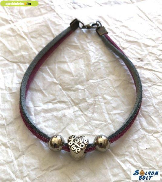 Bizsu ékszerek rovaton belül a(z) "Karkötő pink és kék bőrzsinórral, bogyókkal és szívvel" című hirdetést látja. (fent)