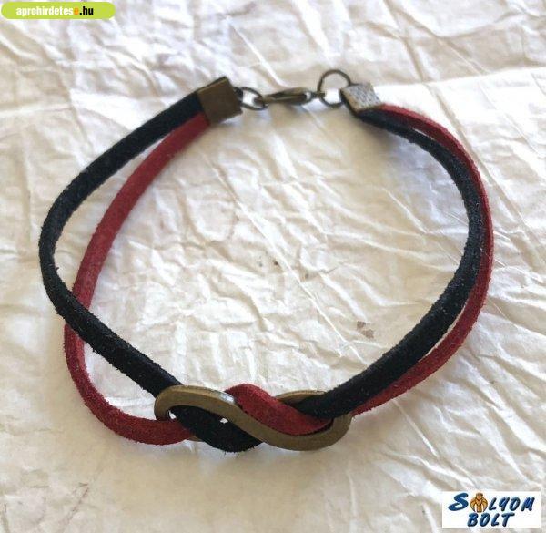 Bizsu ékszerek rovaton belül a(z) "Karkötő bordó-fekete bőrcsíkokkal és végtelen medállal" című hirdetést látja. (fent)