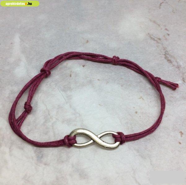 Zsinóros karkötő lila színben, végtelen medállal Anyaga: vékony zsinór és ezüst