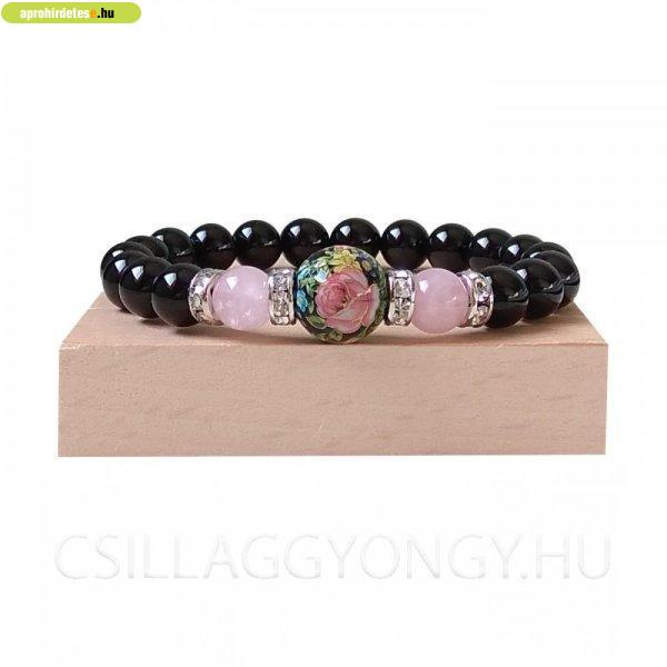Bizsu ékszerek rovaton belül a(z) "Ónix karkőtő madagaszkári rózsakvarccal és Tensha gyönggyel" című hirdetést látja. (fent)