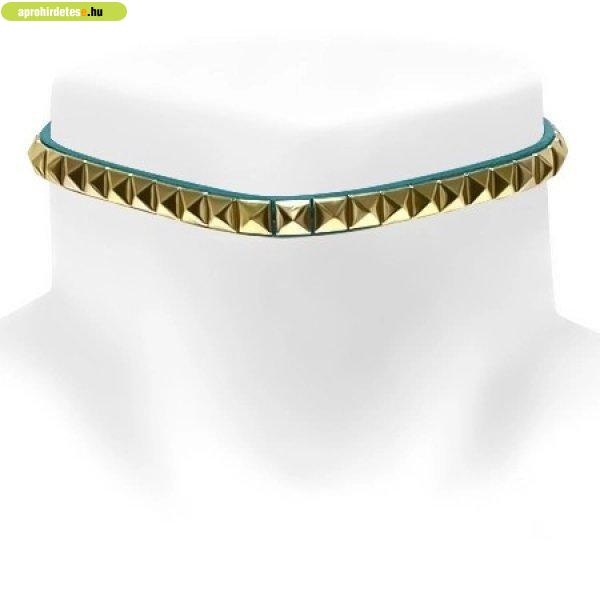 A karkötő préselt bőrből készült. A keskeny szalagot piramis alakú arany színű