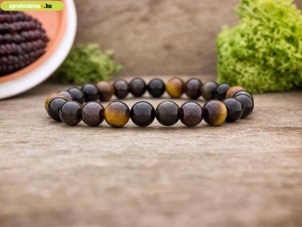 tigrisszem, ónix és gránát 8mm-es ásvány gyöngyökből áll. Az ásvány golyók