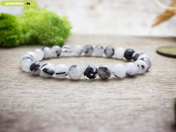Bizsu ékszerek rovaton belül a(z) "Fekete és hófehér kvarc ásvány karkötő" című hirdetést látja. (fent)