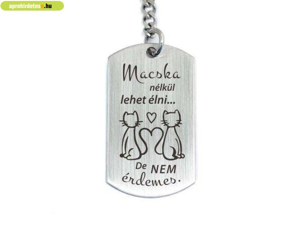 "Macska nélkül lehet élni... de nem érdemes" feliratos acél szögletes medálos