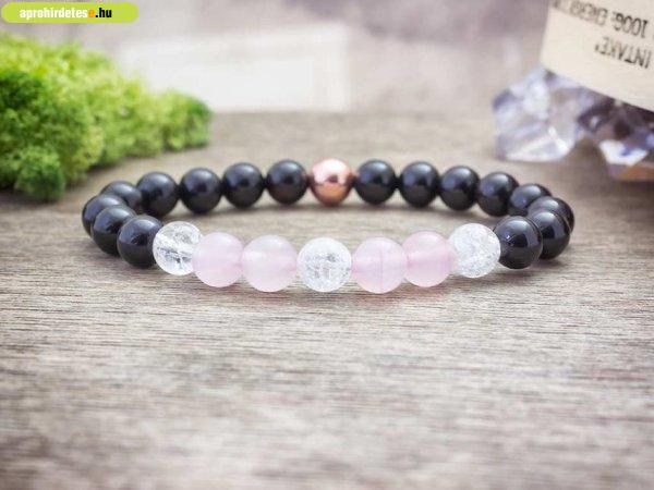 8 mm-es ónix, rózsakvarc, hematit és roppantott hegyikristály ásvány gyöngyökből