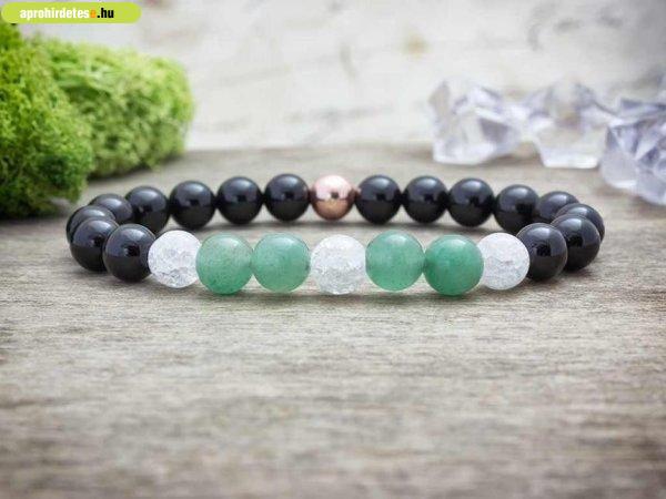 8 mm-es ónix, aventurin, hematit és roppantott hegyikristály ásvány gyöngyökből
