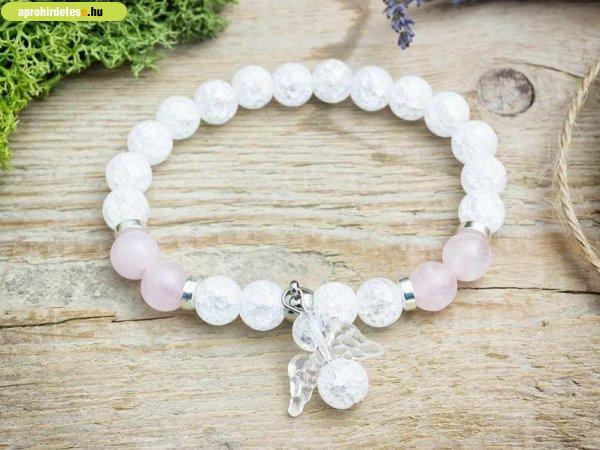 Angyali Amor rózsakvarc és hegyikristály ásvány karkötő