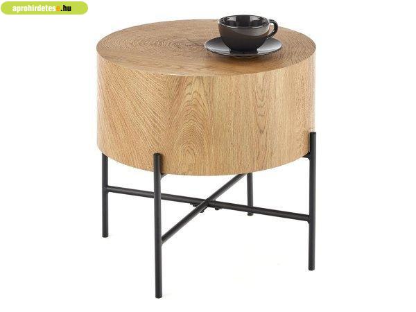 Különleges dohányzóasztal kör alakú, natúr tölgy színű asztallappal és fekete