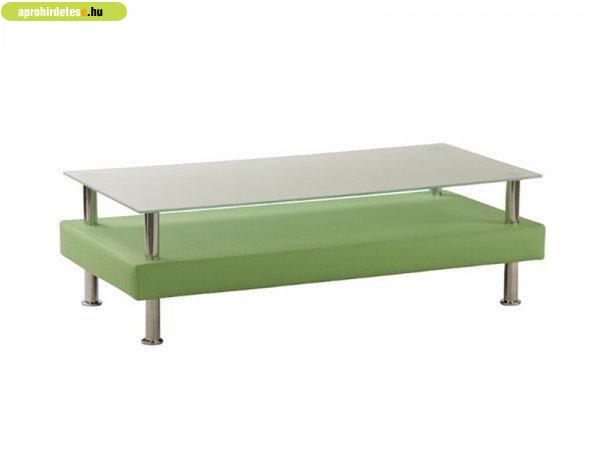 Minimalista stílusú dohányzóasztal krómozott lábakkal, kárpitozott alsó résszel
