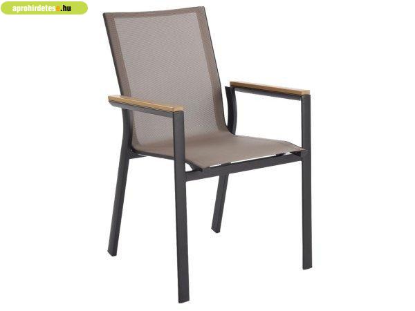 Masszív alumínium vázzal és hálós ülőfelülettel rendelkező, rakásolható kültéri