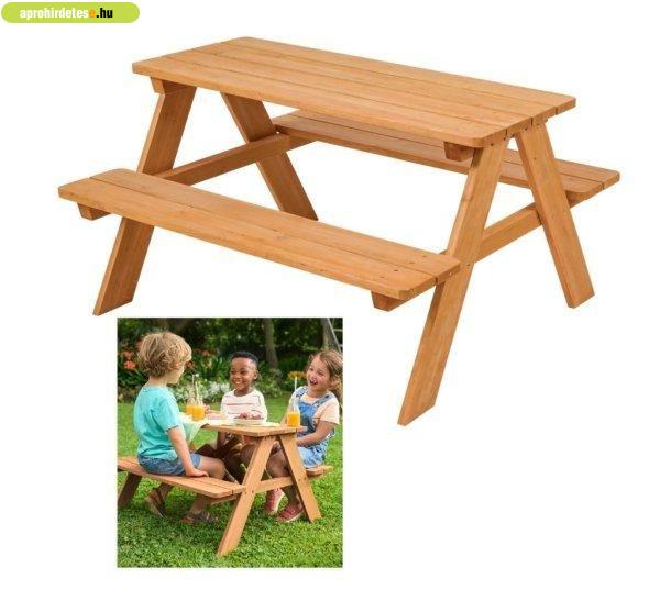 Természetes anyagú, fából készült piknik pad szett ahol játszani, festeni,