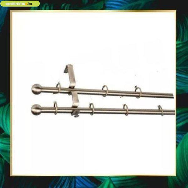 Dupla, óarany színű karnisgarnitúra. A szett tartalma: 2 db 16mm átmérőjű,