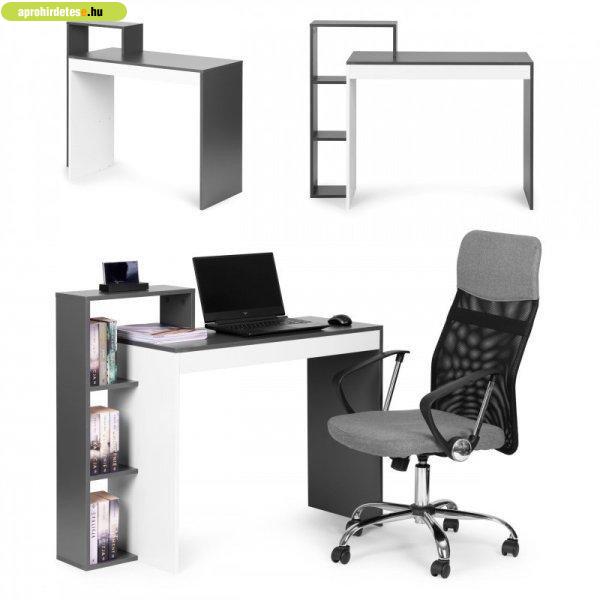 Fehér és szürke irodai számítógépasztal, íróasztal + könyves