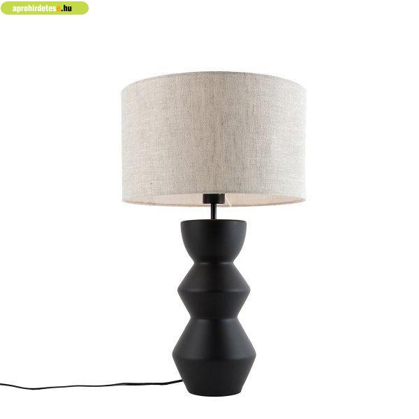 Design asztali lámpa fekete textil búrával világos szürke 35