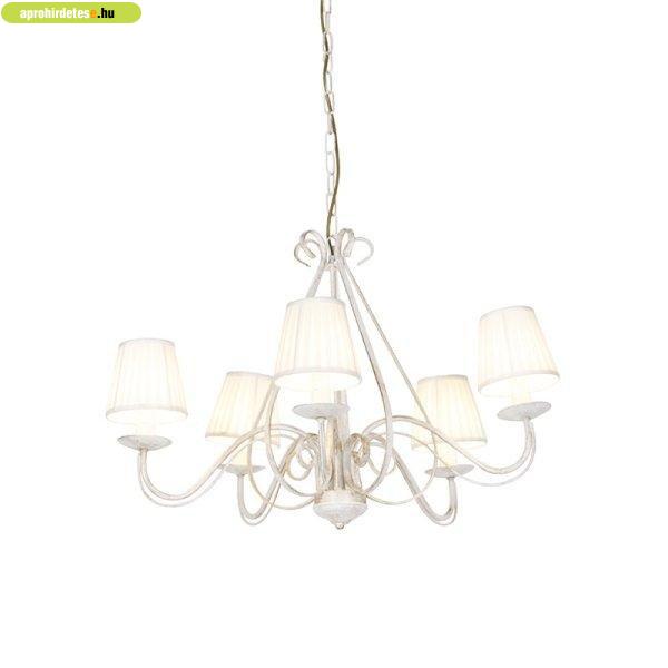 Csillár fehér, hullámos krémszínű lámpabúrával, 5-lámpás - G