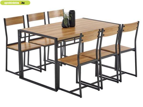 Étkezőasztal 6 darab székkel arany tölgy-fekete színkombinációban. Az