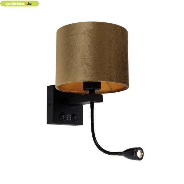 térnek. Ez a fekete fali lámpa 18 cm-es bronz bársony árnyékkal ötvözi a luxust