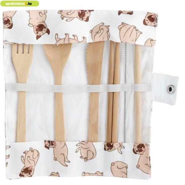 Evőeszköz szett hordozható vászon tartóban, 6 db-os - Mopsz,