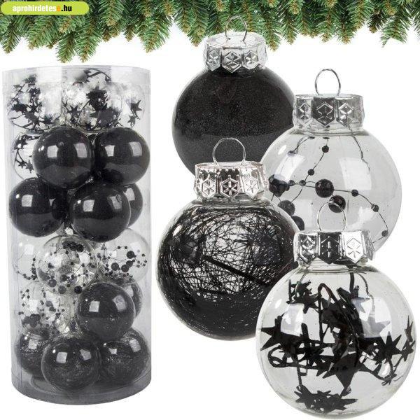 Karácsonyi gömb szett, 24 db, fekete