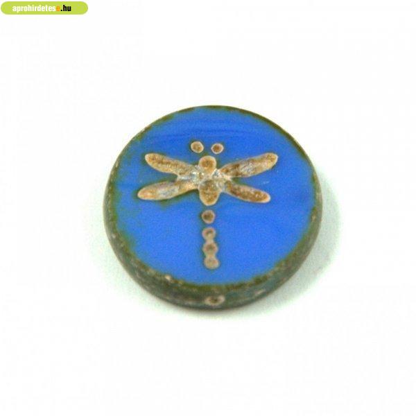 Cseh table cut gyöngy - hosszában fúrt kerek szitakötő mintás - Sapphire Picasso
