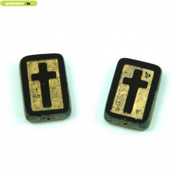Cseh table cut gyöngy - hosszában fúrt tégla - kereszt - Jet Gold - 17 x 11 x