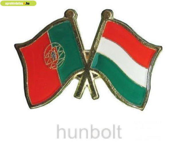 Egyéb börze rovaton belül a(z) "Kitűző, páros zászló Portugál-Magyar jelvény 26x15 mm" című hirdetést látja. (fent)