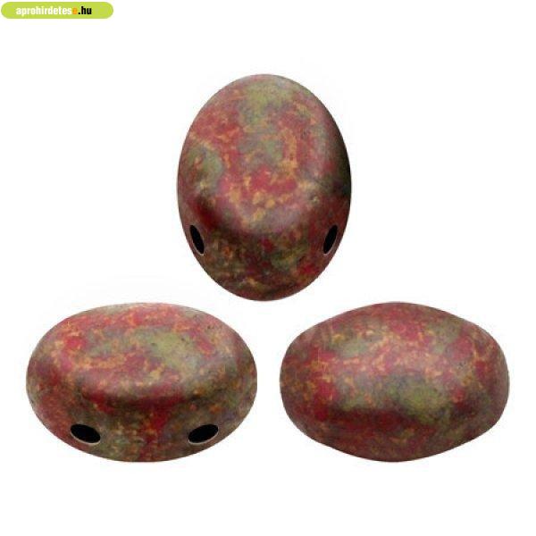Samos® par Puca®gyöngy - Opaque Coral Red Deep Gold - 5x8 mm