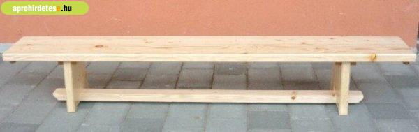 Tömör fenyőfa lappal, fa lábakkal. A lap vastagsága: 3,5 cm. A tornapadot