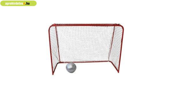 Piros színű, 160x115x65 cm-es, fémvázas, floorball kapu, hálóval, hátsó