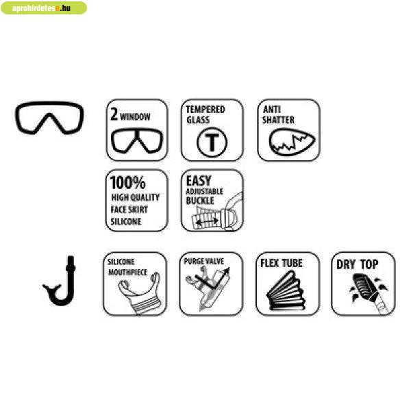 sznorkel rész, állítható, könnyen felcsíptethető sznorkel. Maszk edzett