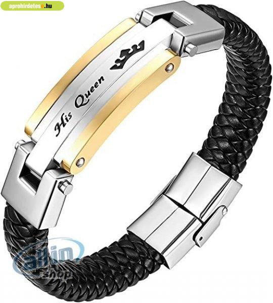 barátság karkötők ?His Queen? gravírozású . Anyaga: rozsdamentes acél, bőr -