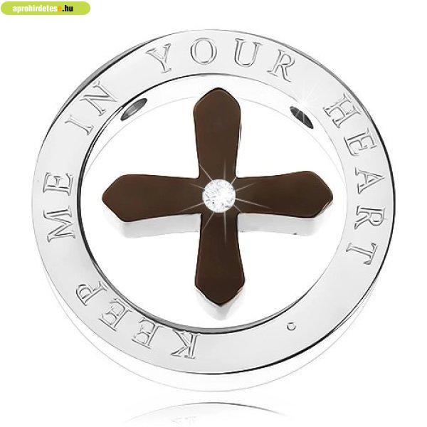 Kettős medál - fekete és bronz kereszt, ezüst gyűrűben