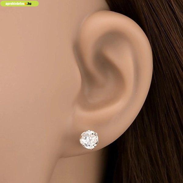 Bedugós ezüst fülbevaló - tiszta cirkonkő karmos fogatban, 6
