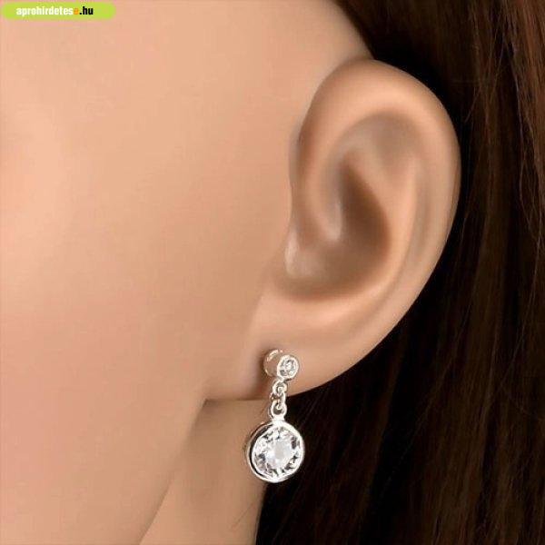 Bedugós fülbevaló, 925 ezüstből, átlátszó, kerek cirkóniák d