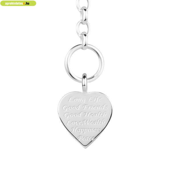 szív alakú medálból, amelyre "Long Life, Good Friends, Good Health, Love,