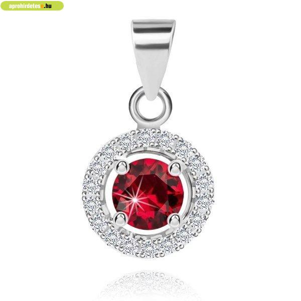Medál 925 ezüstből, átlátszó kör kontúr, piros kerek cirkóni