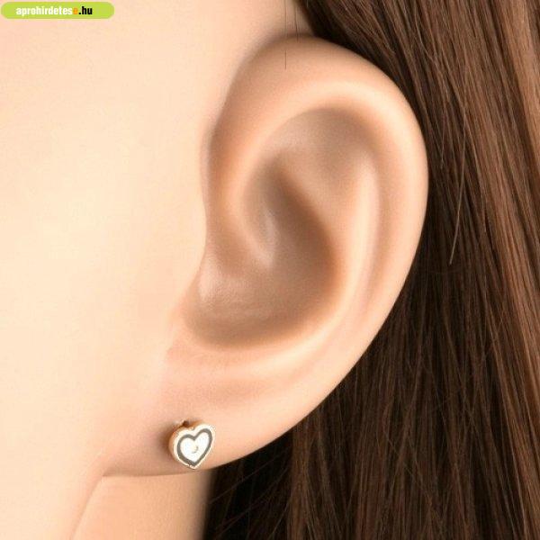 Ékszerek rovaton belül a(z) "9K arany fülbevaló szív alakú, fekete mázzal és cirkóniával" című hirdetést látja. (fent)